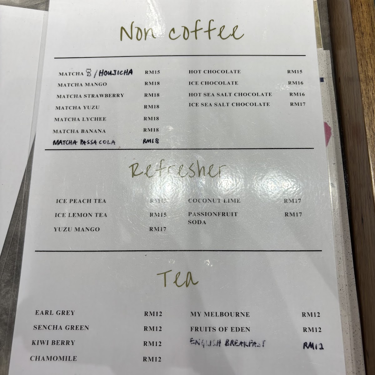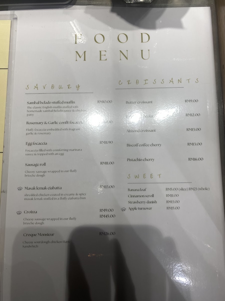 The menu includes a variety of savory options, such as the Masak Lemak Ciabatta, filled with shredded chicken in a spicy coconut broth, and the ever-popular Dendeng Croizza, which perfectly marries classic flavors with innovative flair. Don't miss their delectable pastries, including the Blueberry Danish and Pain Au Chocolate, both crafted with fresh ingredients that promise a burst of flavor.